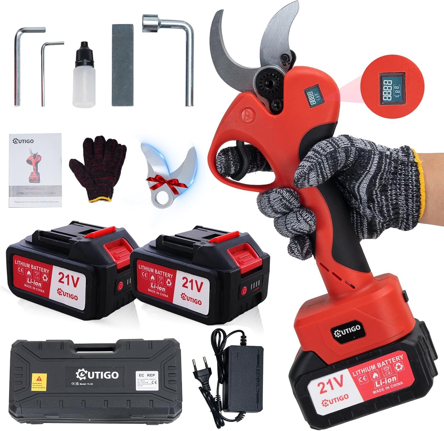 Scopri Forbici Potatura Elettriche, Dotato di 2 batterie da 3000 mAh, 40 mm, con display: tagli potenti e precisi fino a 40 mm con autonomia prolungata e controllo immediato sul display