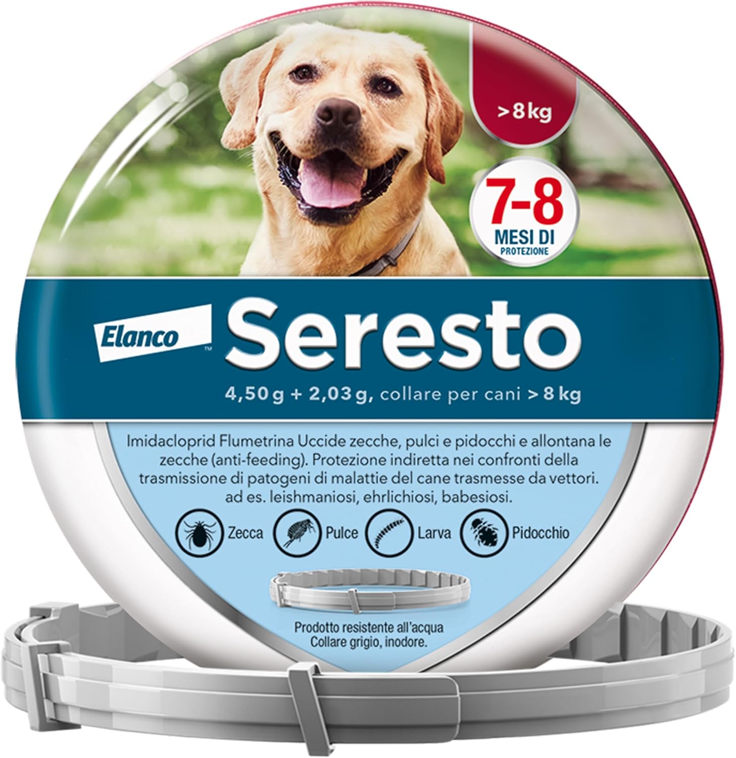 Il Seresto collare antiparassitario per cani oltre 8 kg è una soluzione pratica e a lunga durata per proteggere il proprio animale da pulci, zecche e pidocchi. Grazie alla tecnologia di rilascio controllato dei principi attivi, offre fino a 8 mesi di protezione continua, aiutando anche a ridurre il rischio di trasmissione della leishmaniosi canina.